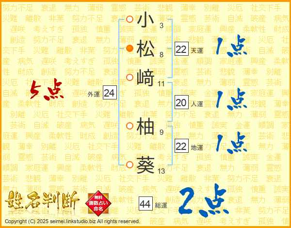 小(3画)松(8画)﨑(11画) 柚(9画)葵(13画)