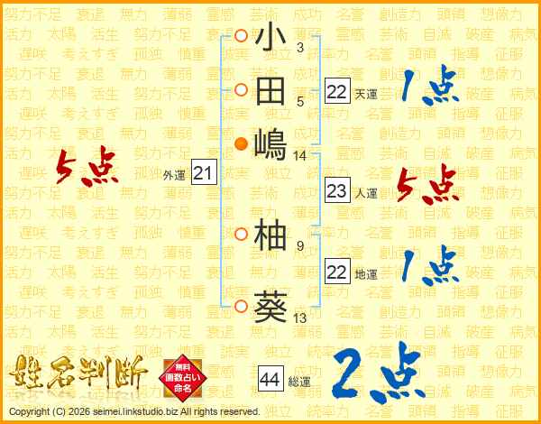 小田嶋柚葵さんの総運は44画の2点!