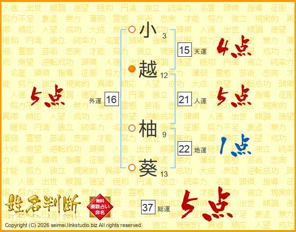 小越柚葵さんの総運は37画の5点!