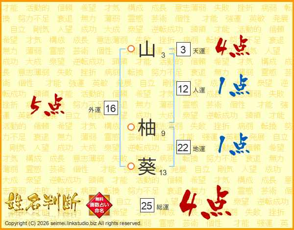 山柚葵さんの総運は25画の4点!