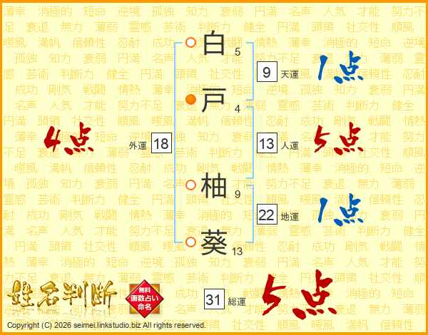 白(5画)戸(4画) 柚(9画)葵(13画)