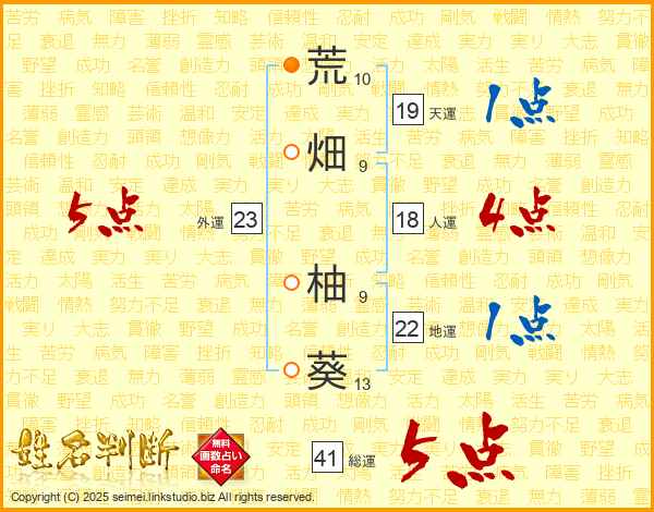荒(10画)畑(9画) 柚(9画)葵(13画)