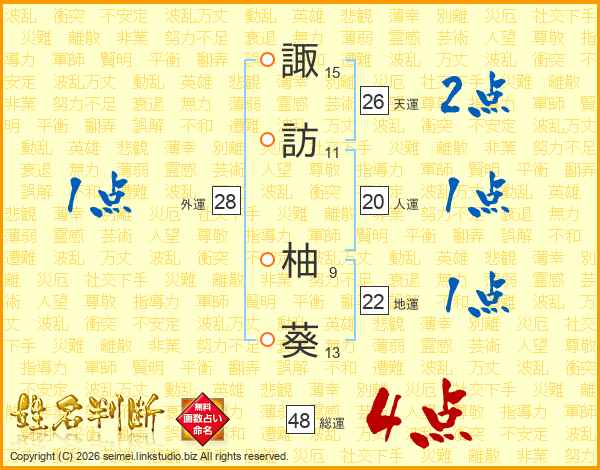 諏訪柚葵さんの天運は26画の2点!