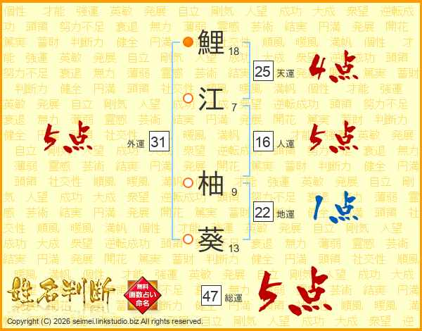鯉(18画)江(7画) 柚(9画)葵(13画)