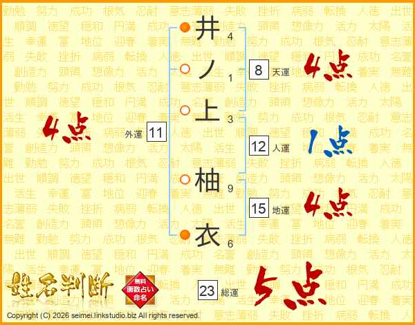 井ノ上柚衣さんの天運は8画の4点!