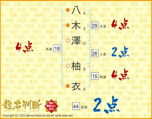 八木澤柚衣さんの天運は29画の4点!