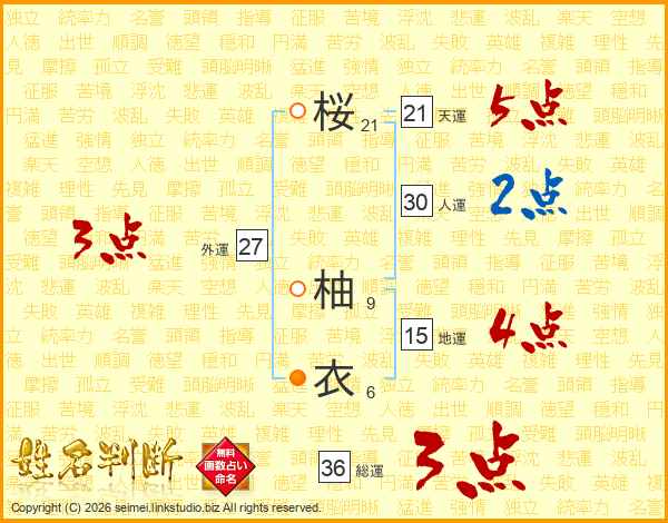 桜柚衣さんの総運は36画の3点!