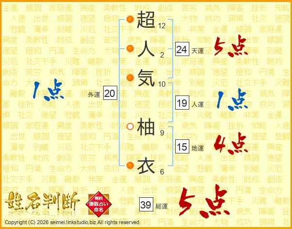 超人気柚衣さんの総運は39画の5点!