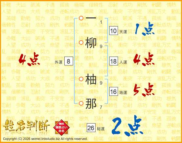 一柳柚那さんの総運は26画の2点!