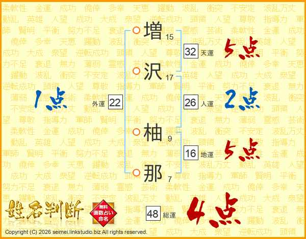 増沢柚那さんの総運は48画の4点!