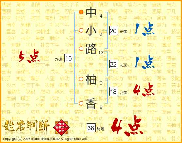 中小路柚香さんの総運は38画の4点!