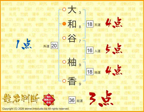 大和谷柚香さんの総運は36画の3点!