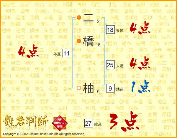 二橋柚さんの人運は25画の4点!