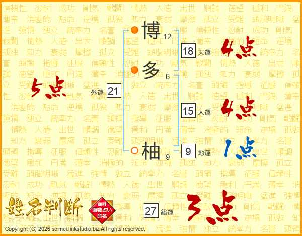 博多柚さんの総運は27画の3点!