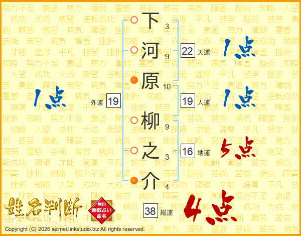 下河原柳之介さんの総運は38画の4点!