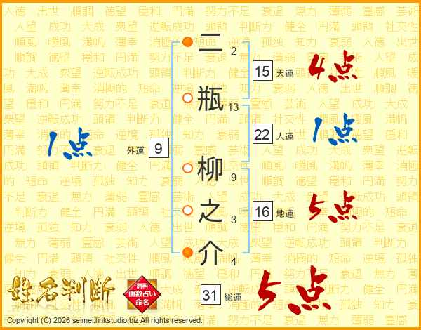 二瓶柳之介さんの総運は31画の5点!