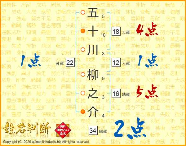 五十川柳之介さんの総運は34画の2点!