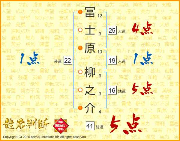 冨(12画)士(3画)原(10画) 柳(9画)之(3画)介(4画)