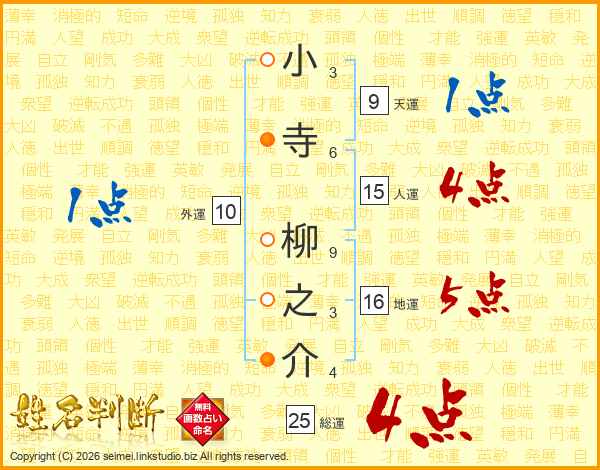 小寺柳之介さんの総運は25画の4点!