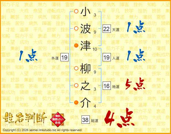 小波津柳之介さんの総運は38画の4点!