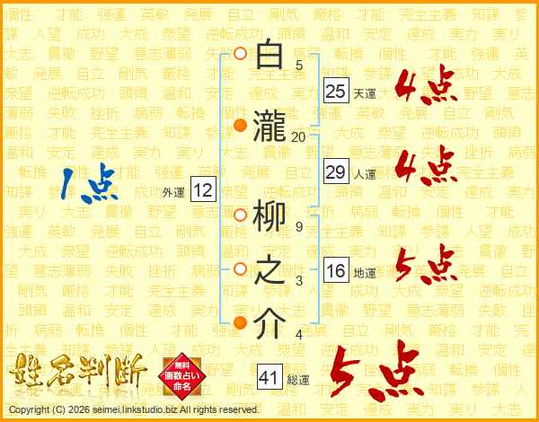 白瀧柳之介さんの総運は41画の5点!