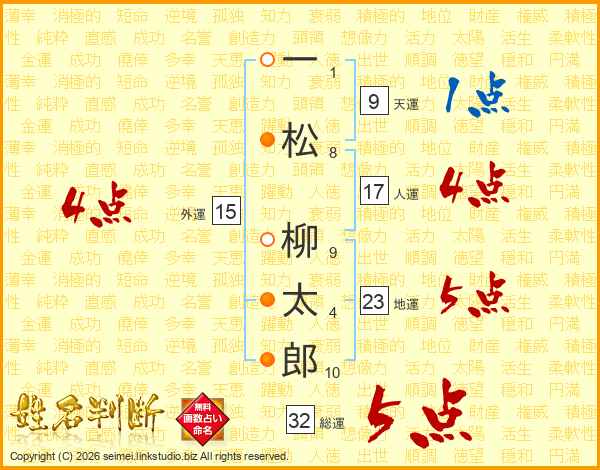 一松柳太郎さんの総運は32画の5点!