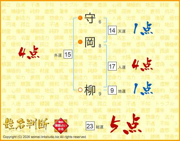 守岡柳さんの総運は23画の5点!