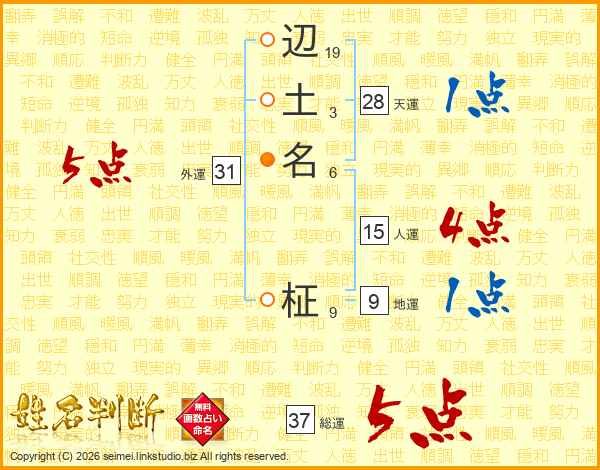 辺土名柾さんの総運は37画の5点!