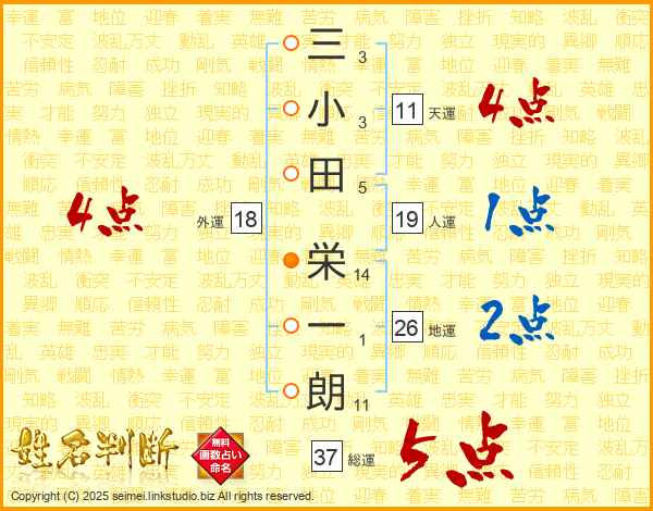 三(3画)小(3画)田(5画) 栄(14画)一(1画)朗(11画)