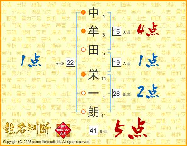 中牟田栄一朗さんの地運は26画の2点!
