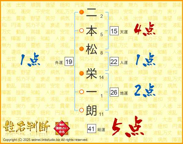 二本松栄一朗さんの総運は41画の5点!