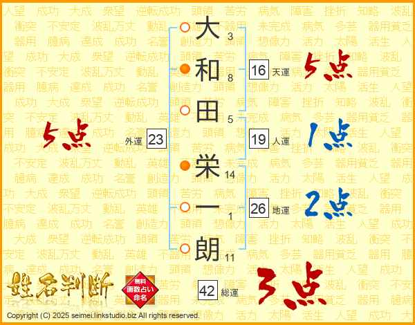 大(3画)和(8画)田(5画) 栄(14画)一(1画)朗(11画)