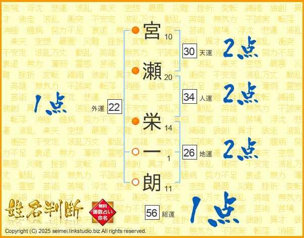 宮瀬栄一朗さんの総運は56画の1点!