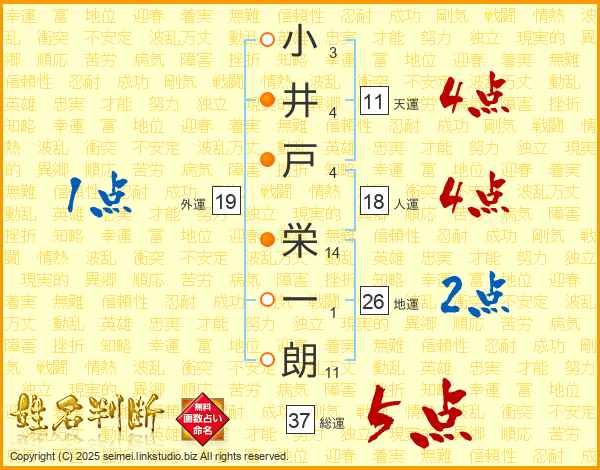 小(3画)井(4画)戸(4画) 栄(14画)一(1画)朗(11画)