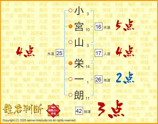 小宮山栄一朗さんの地運は26画の2点!