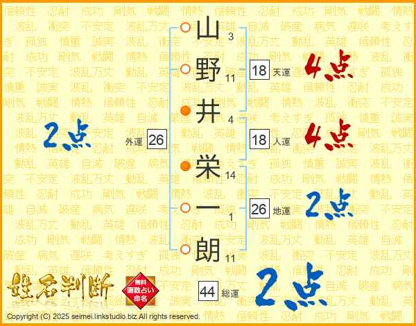 山野井栄一朗さんの総運は44画の2点!
