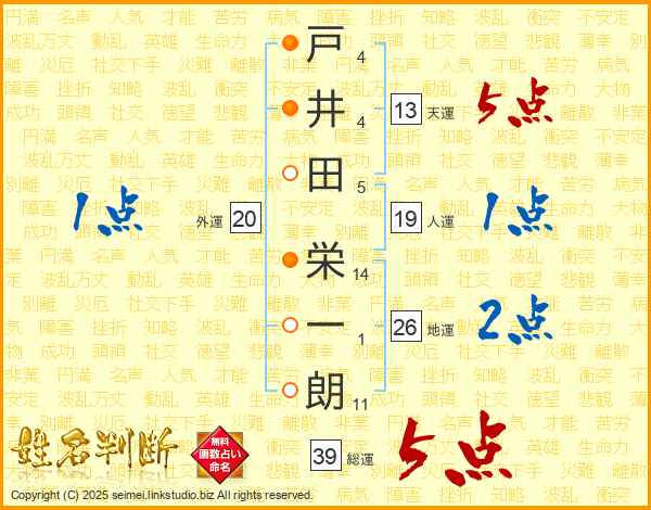 戸井田栄一朗さんの総運は39画の5点!