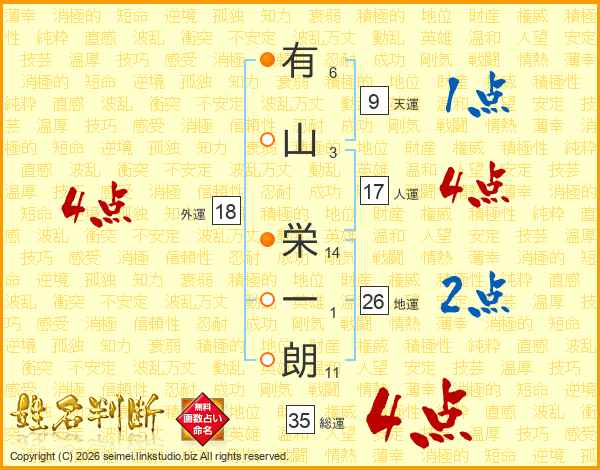 有山栄一朗さんの総運は35画の4点!