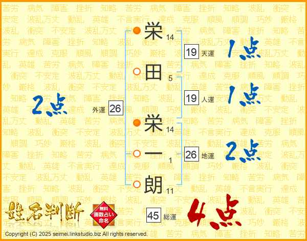 栄(14画)田(5画) 栄(14画)一(1画)朗(11画)
