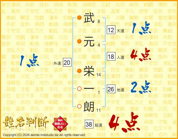 武元栄一朗さんの総運は38画の4点!