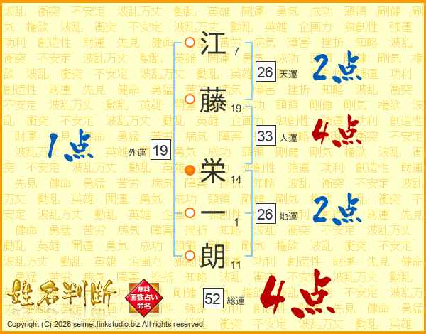江藤栄一朗さんの総運は52画の4点!