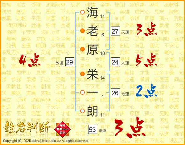 海(11画)老(6画)原(10画) 栄(14画)一(1画)朗(11画)