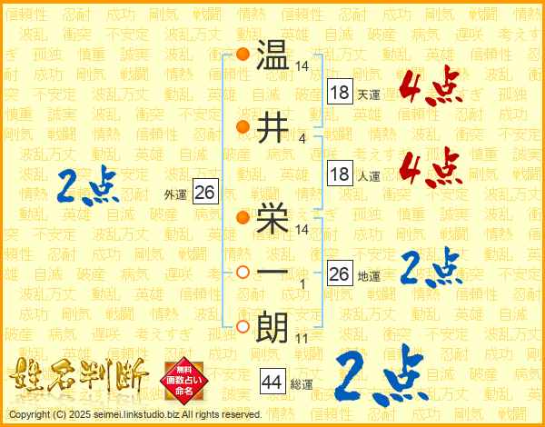 温井栄一朗さんの総運は44画の2点!