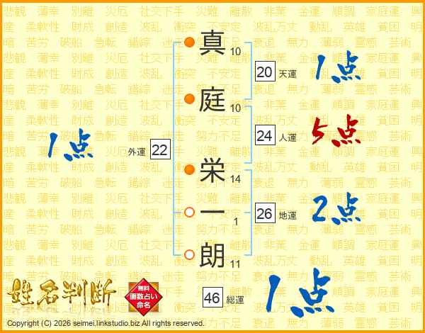 真庭栄一朗さんの総運は46画の1点!