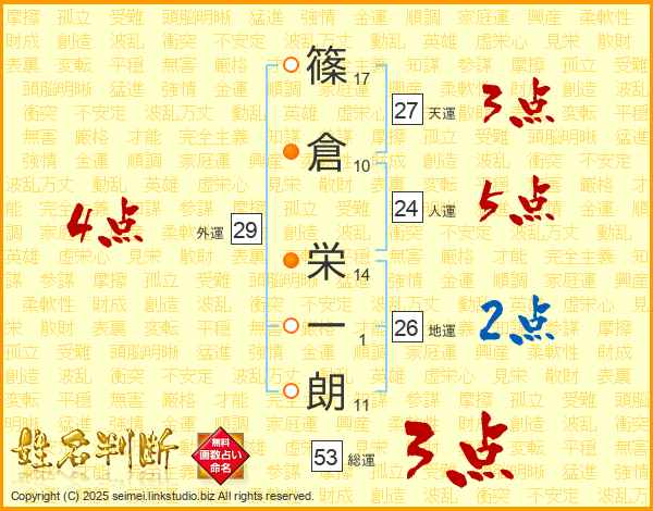 篠(17画)倉(10画) 栄(14画)一(1画)朗(11画)