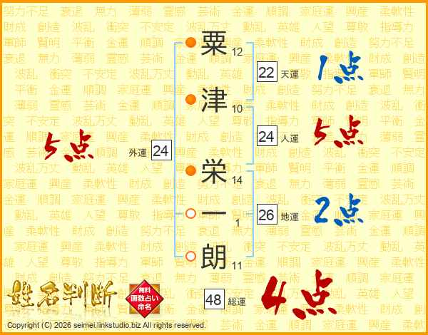 粟津栄一朗さんの総運は48画の4点!