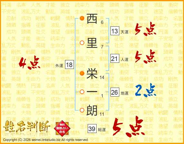 西里栄一朗さんの総運は39画の5点!