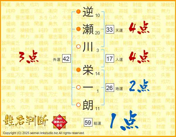 逆瀬川栄一朗さんの天運は33画の4点!