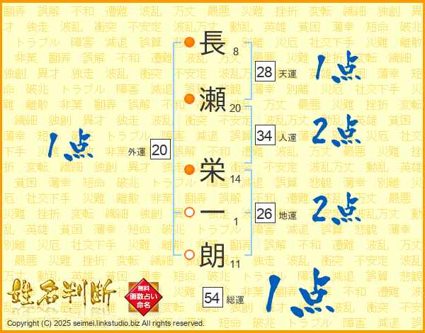長瀬栄一朗さんの総運は54画の1点!