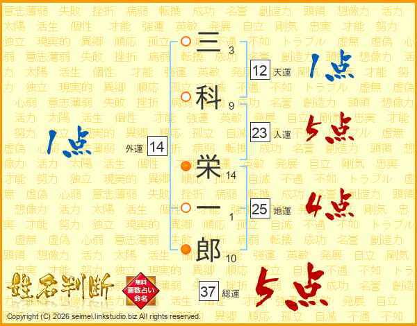 三(3画)科(9画) 栄(14画)一(1画)郎(10画)